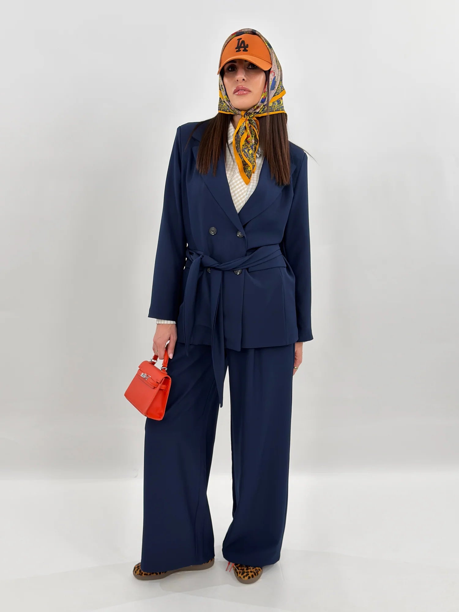 Ho preso la taglia S e calza perfettamente su una 40/42, non stringono. i jeans sono a vita alta. Sono molto luminosi. Ovviamente c’è la possibilità che si stacchino i brillantini, però sono talmente tanti che non è un problema.
