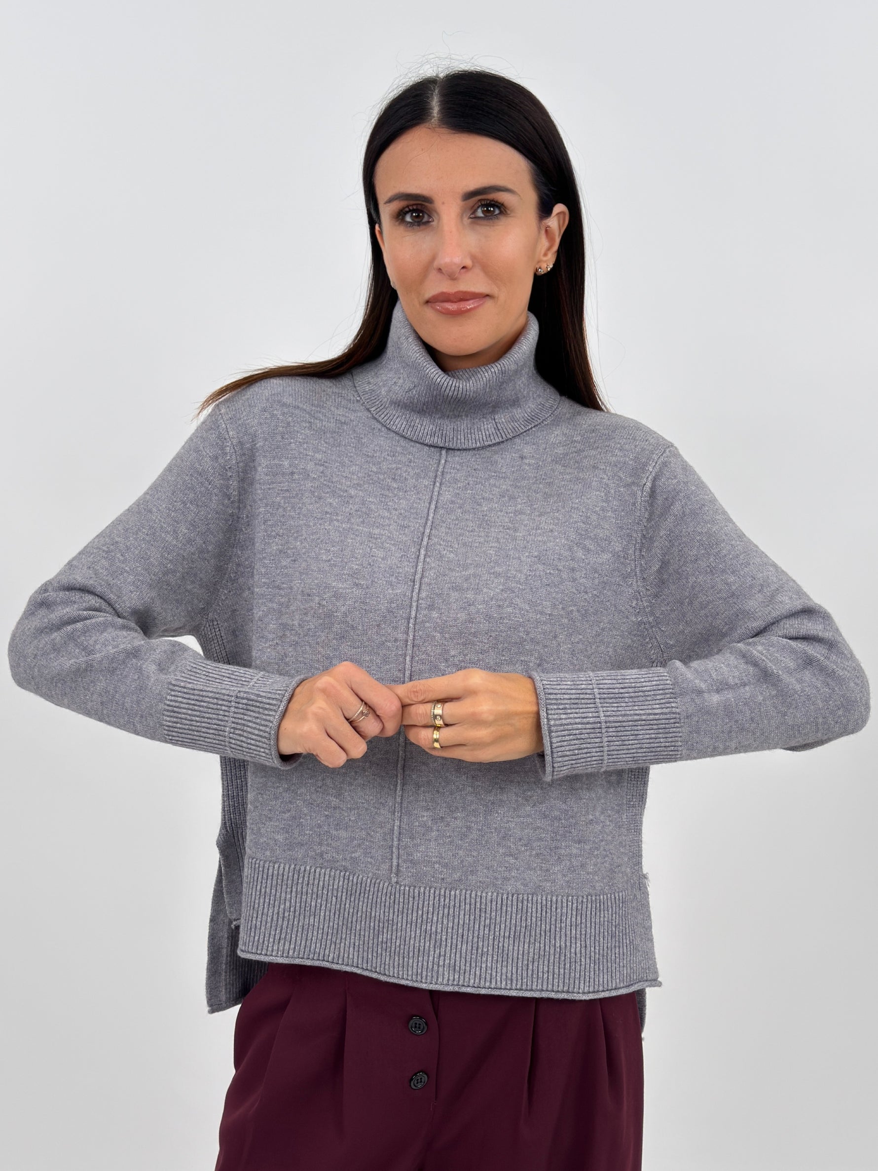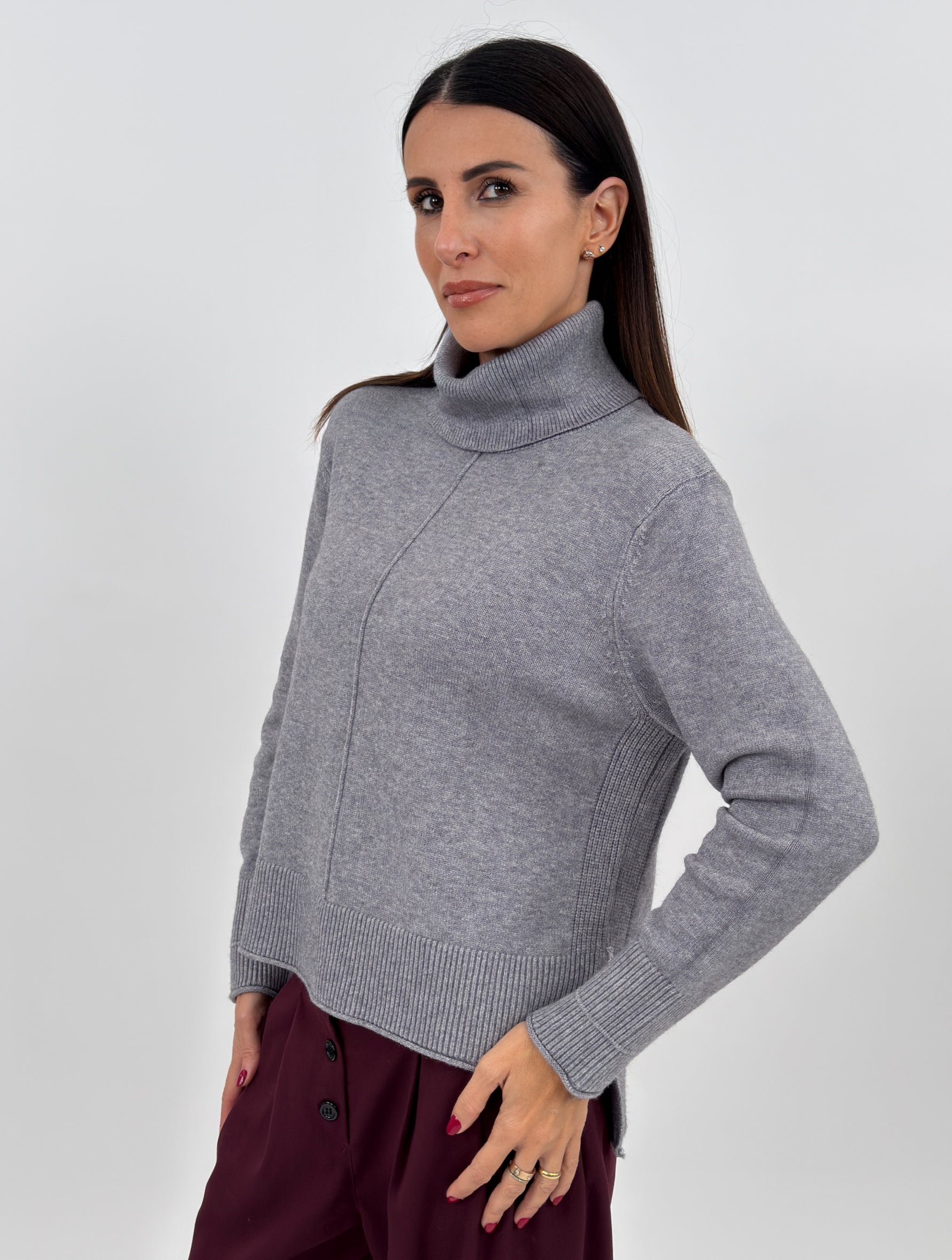 Dolcevita modello lungo, maniche lunghe con polsino finale a coste e spacchetti laterali.