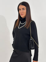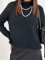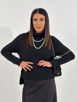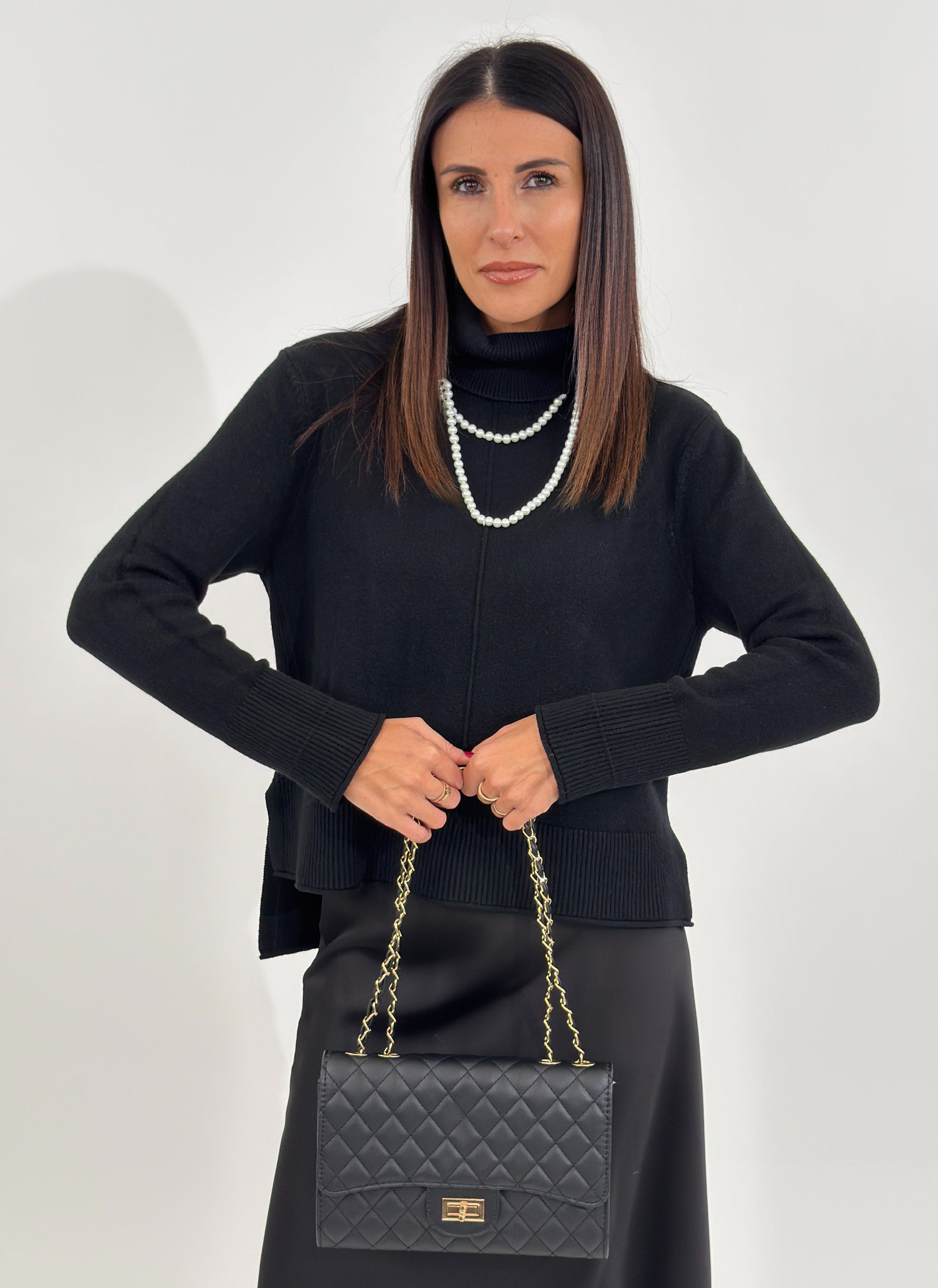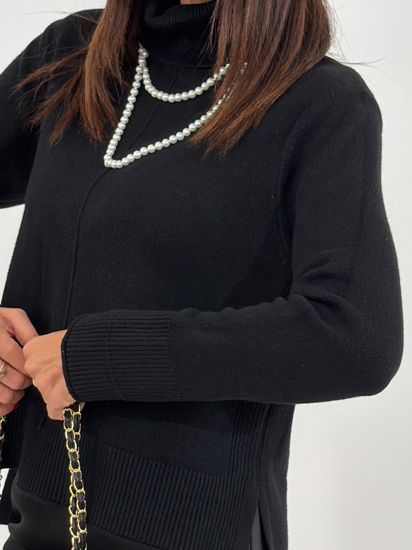 Dolcevita modello lungo, maniche lunghe con polsino finale a coste e spacchetti laterali.