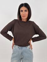 Maglia modello lungo girocollo. Maniche lunghe con spalline imbottite.