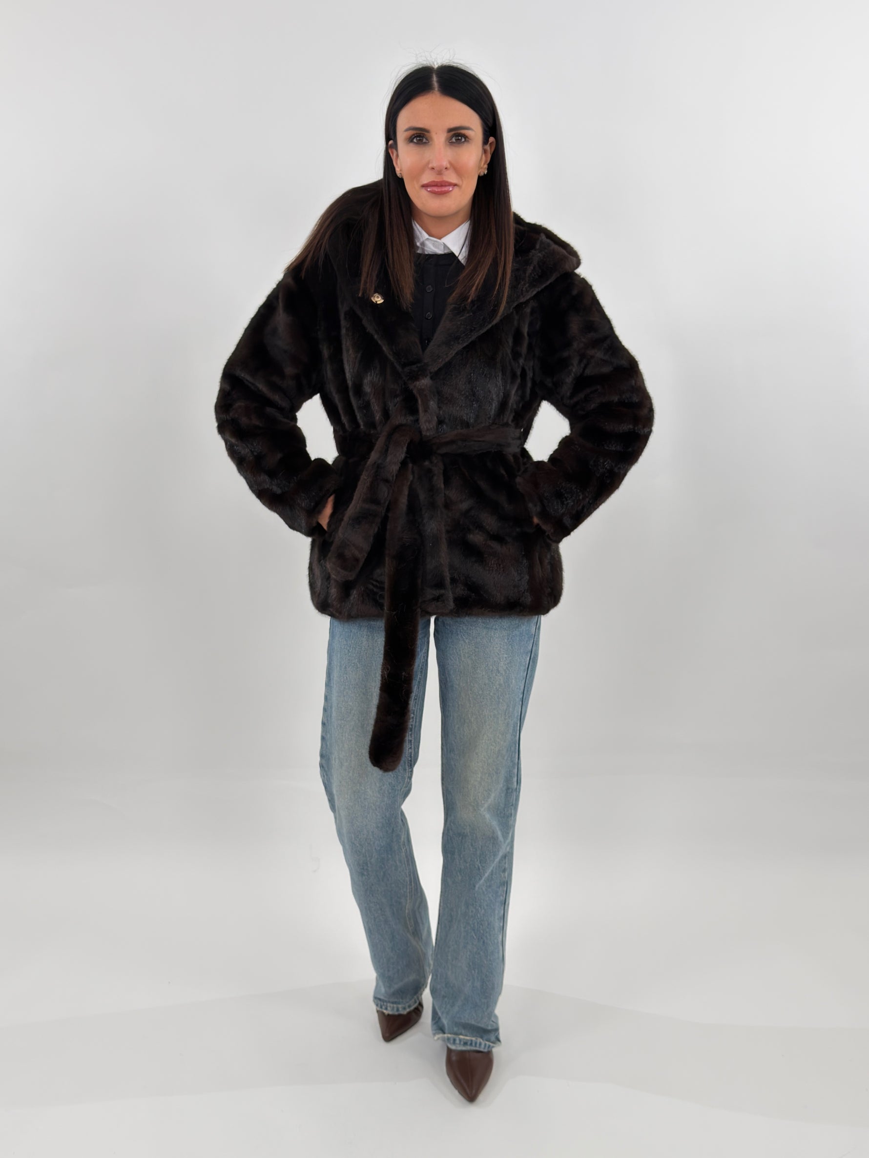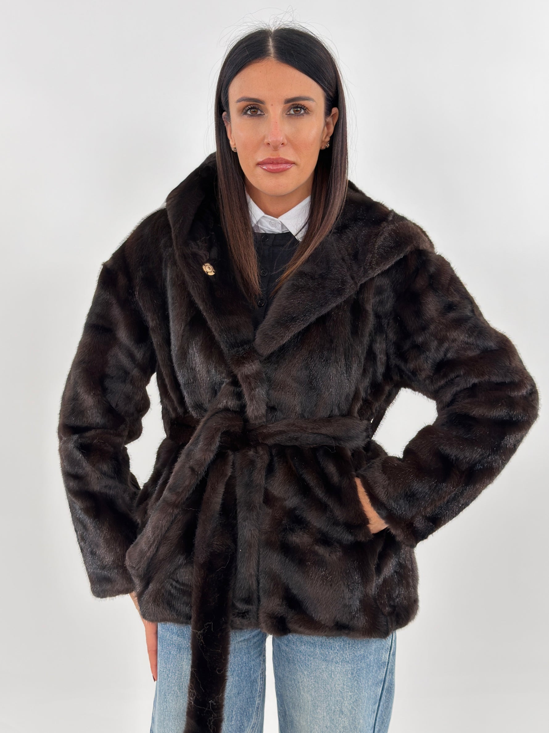 Tra i Nuovi Arrivi in casa Amishops Vi presnetiamo la nostra EcoPelliccia sintetica Budapest modello lunghezza media con cappuccio e fodera interna. Maniche lunghe e tasche laterali. Chiusura frontale con bottoni a pressione e cintura in vita.