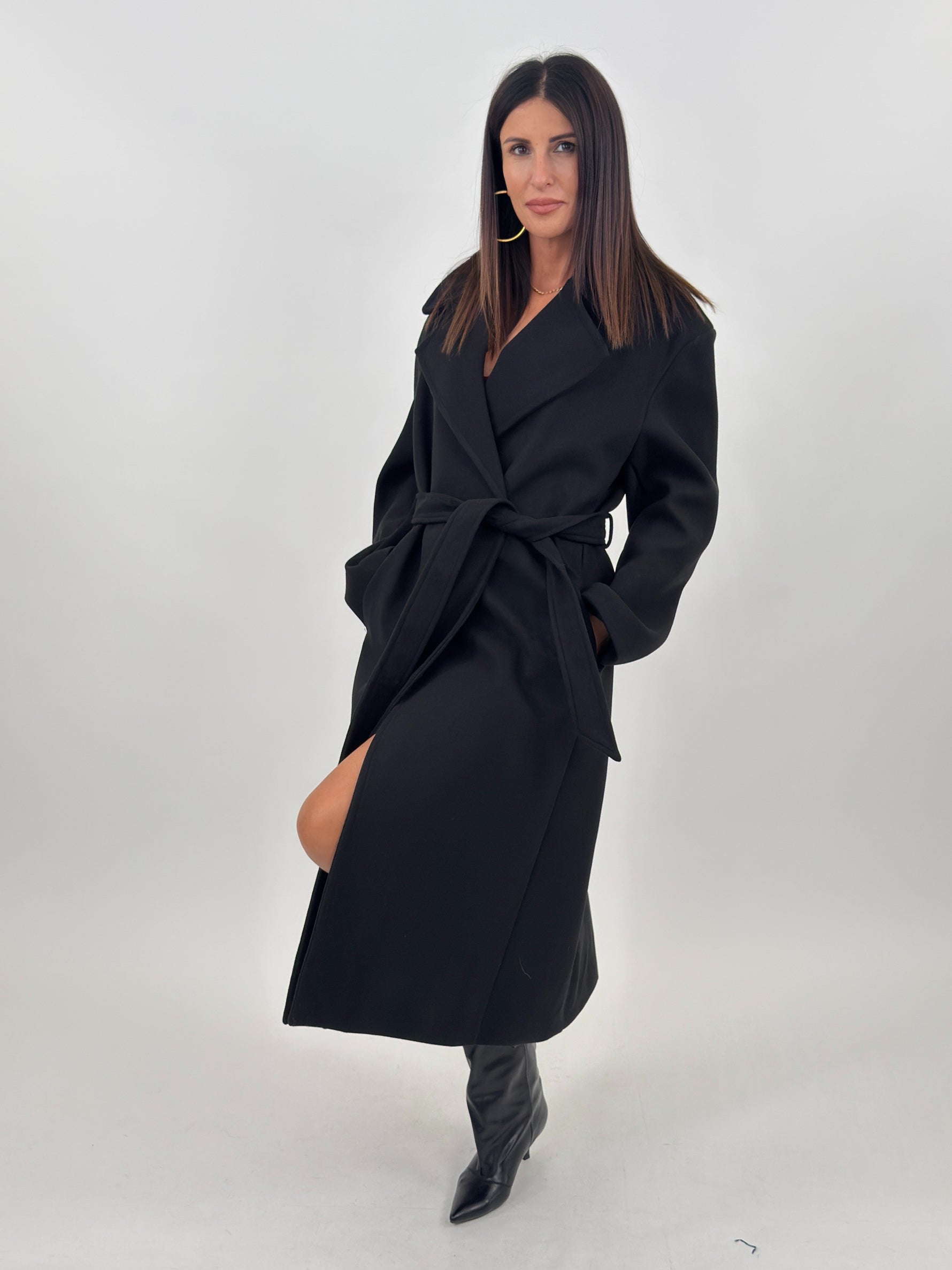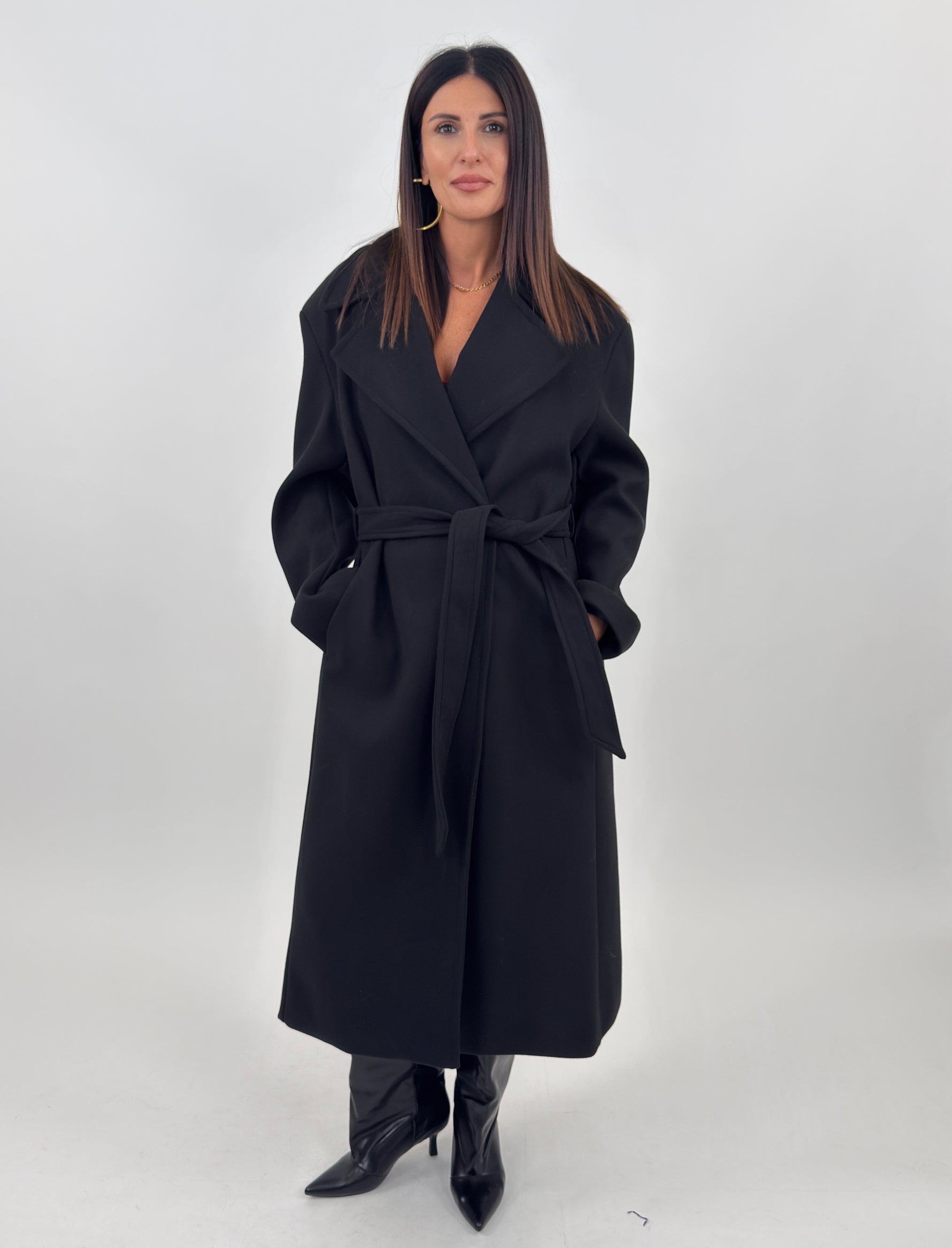 Tra i Nuovi arrivi di questa settimana presentiamo il fantastico Cappotto targato Lumina, modello lungo con collo a revers. Maniche lunghe con spalline imbottite e tasche laterali. Chiusura frontale doppiopetto con bottoni e cintura regolabile in vita.