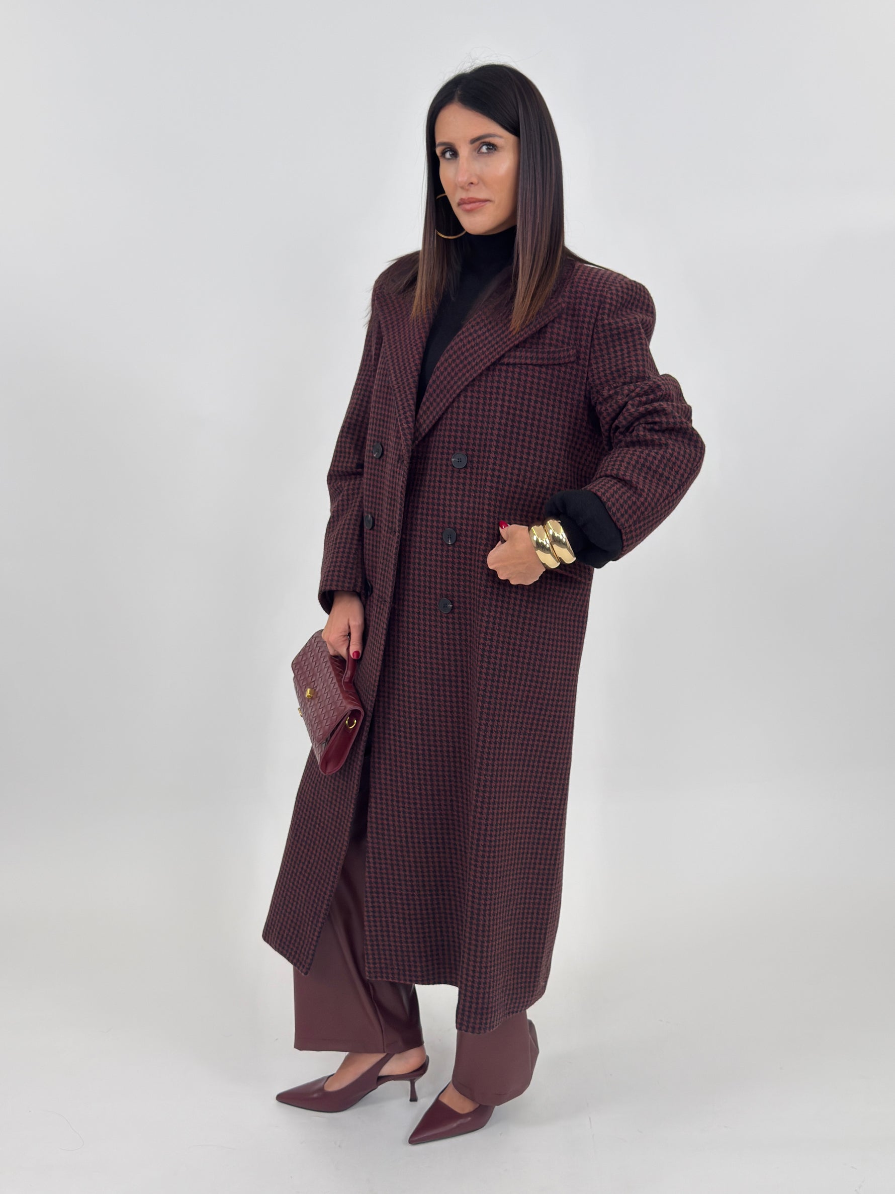 Tra i Nuovi arrivi di questa settimana presentiamo il fantastico Cappotto targato Lumina, modello doppio petto nella trama piede de poule a maniche lunghe. Collo a revers e spalle imbottite. Tasche frontali con patta e taschino sul petto. Spacco posteriore. Chiusura con bottoni.