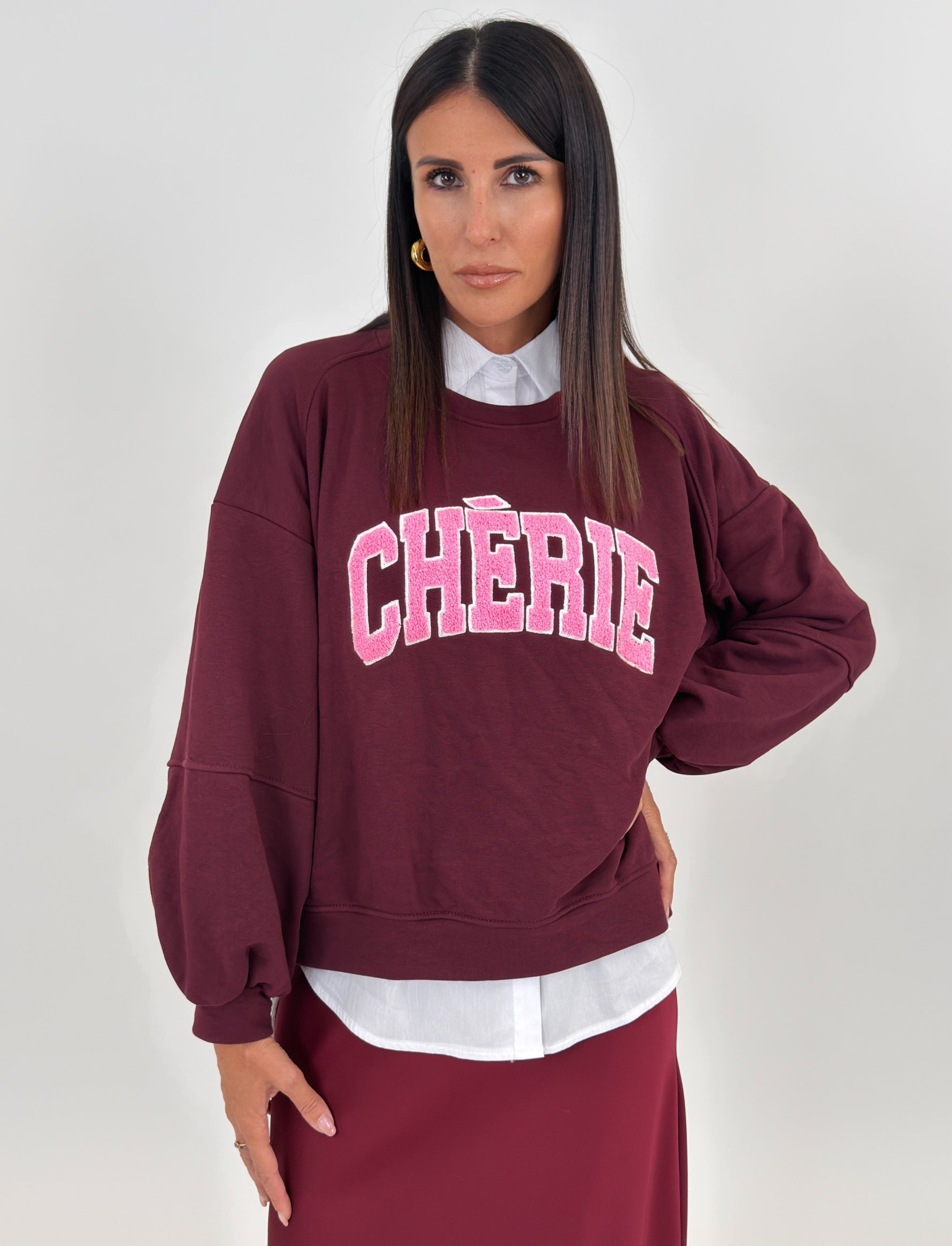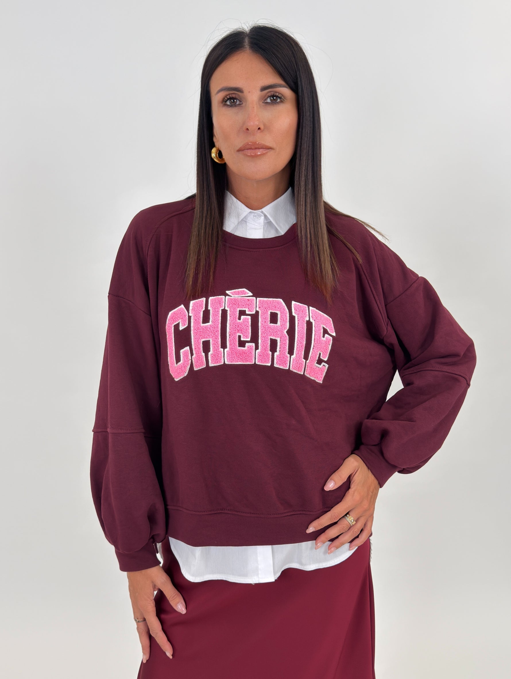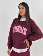 Felpa in cotone garzato, modello girocollo. Maniche lunghe con spalle cadenti e polsino finale. Dettaglio stampa frontale con scritta.