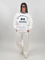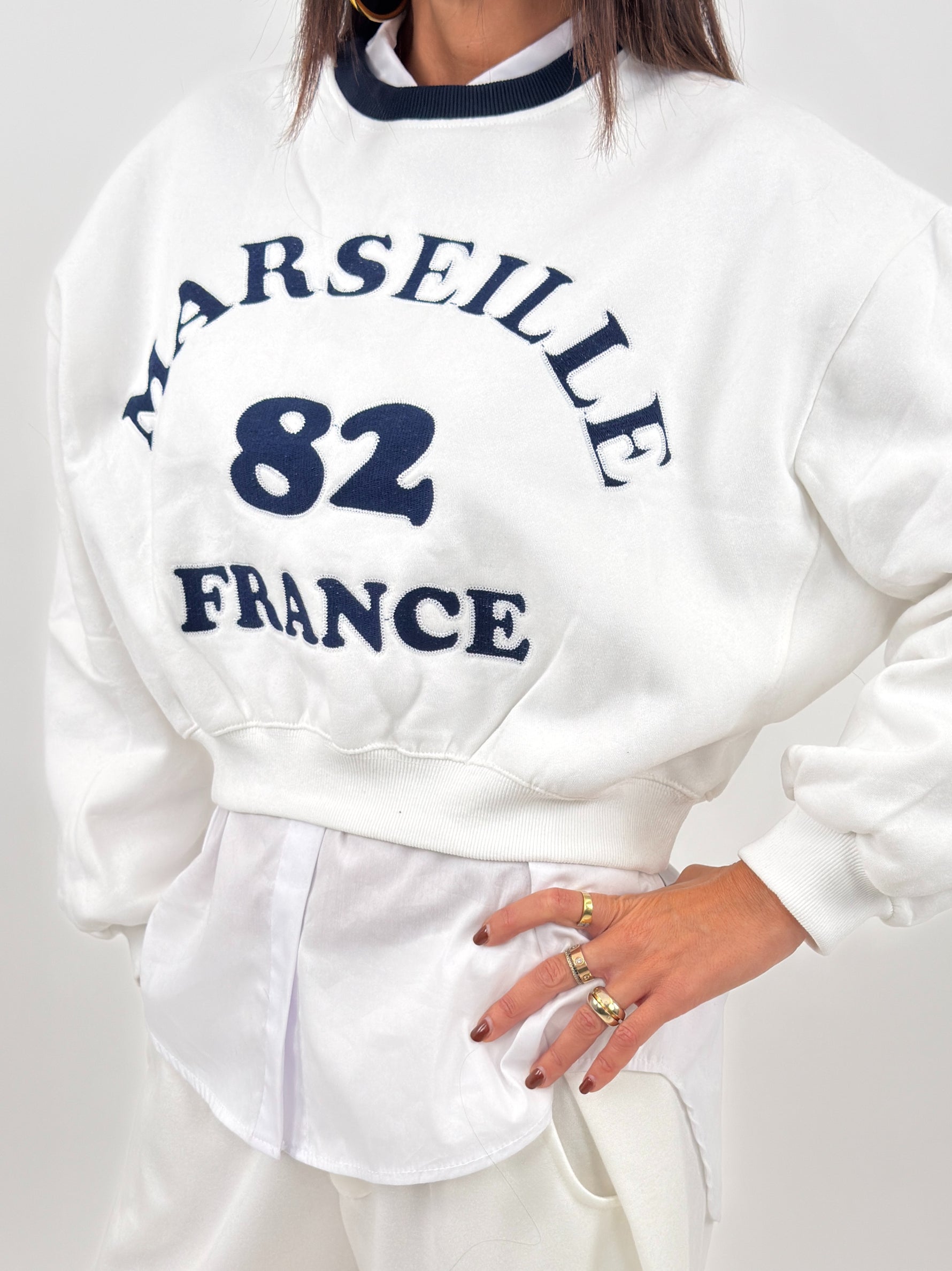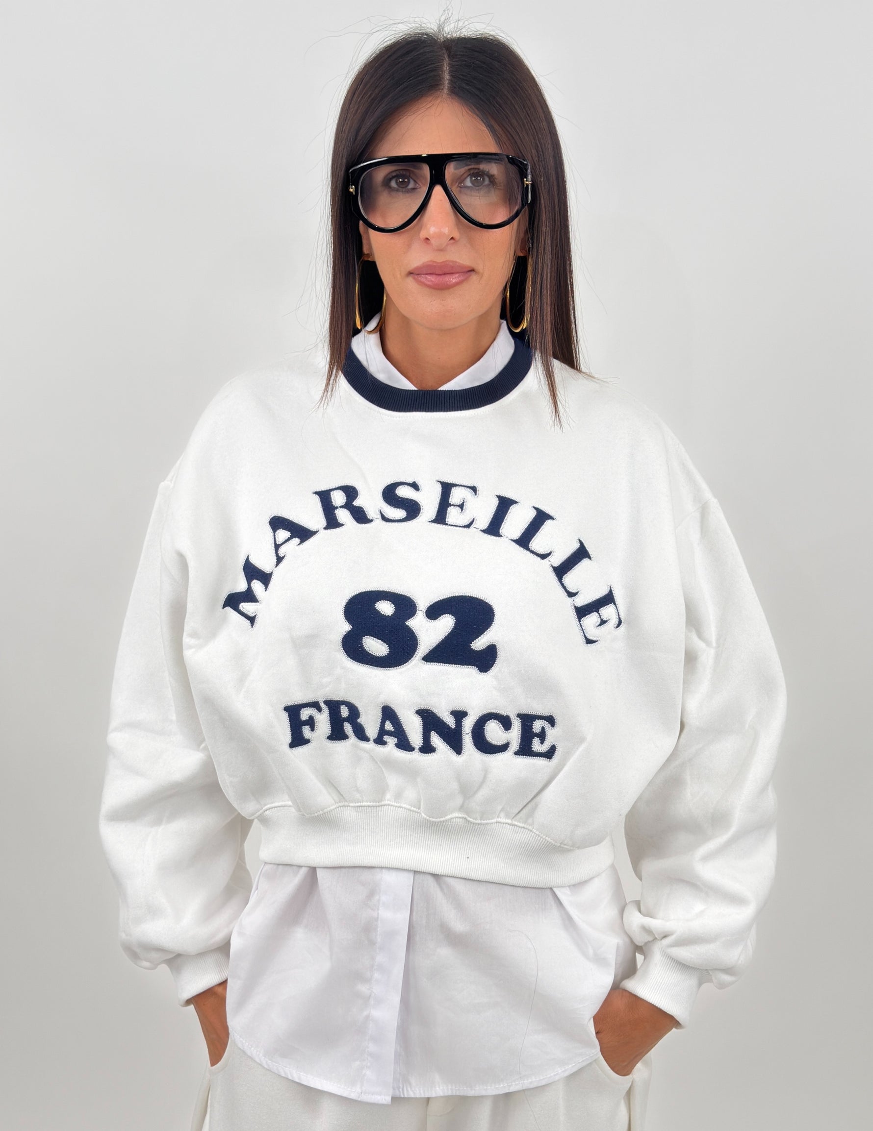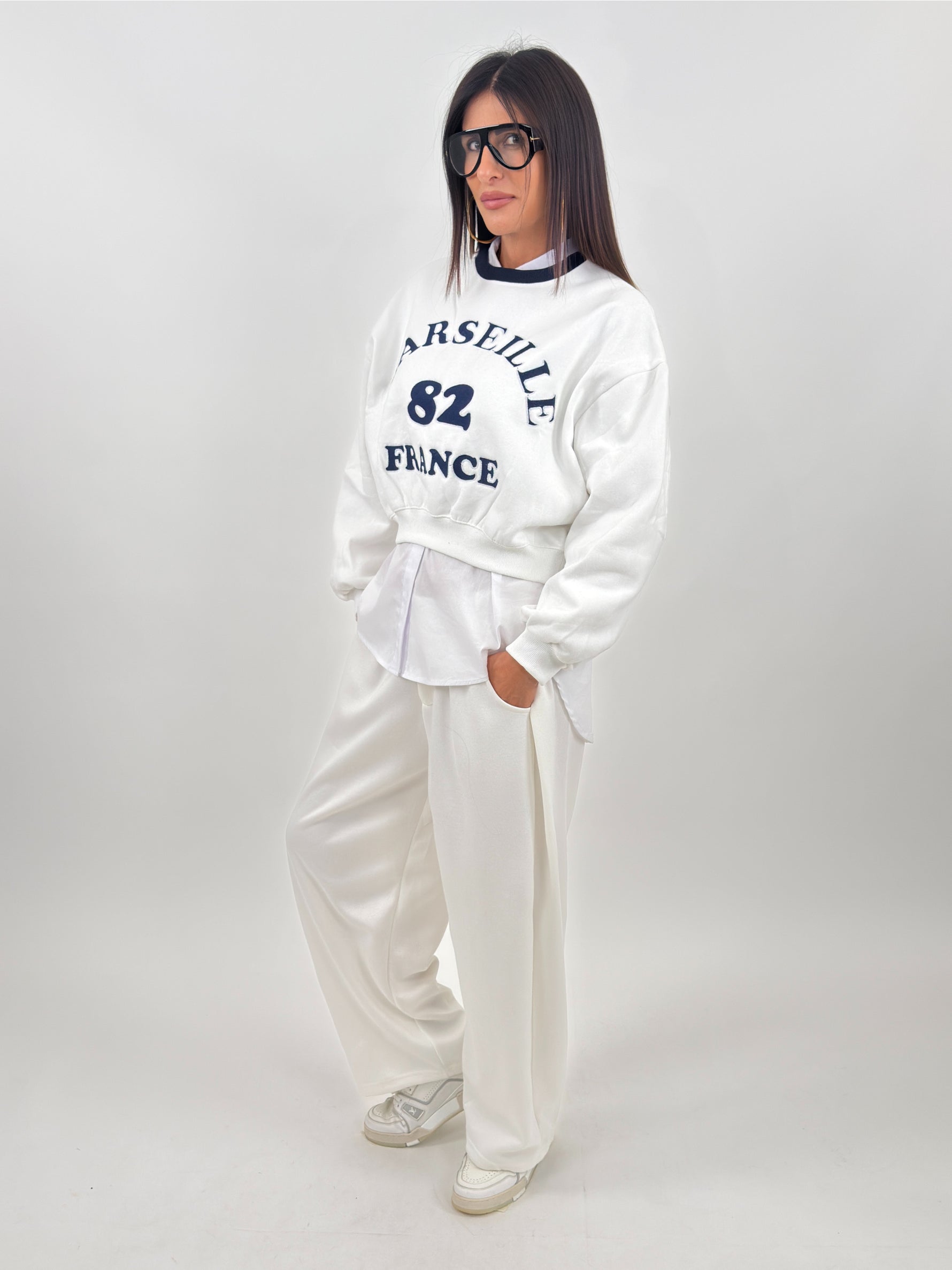 Felpa in tessuto felpato modello crop girocollo. Maniche lunghe con spalle cadenti e polsino finale. Dettaglio stampa frontale con scritta.