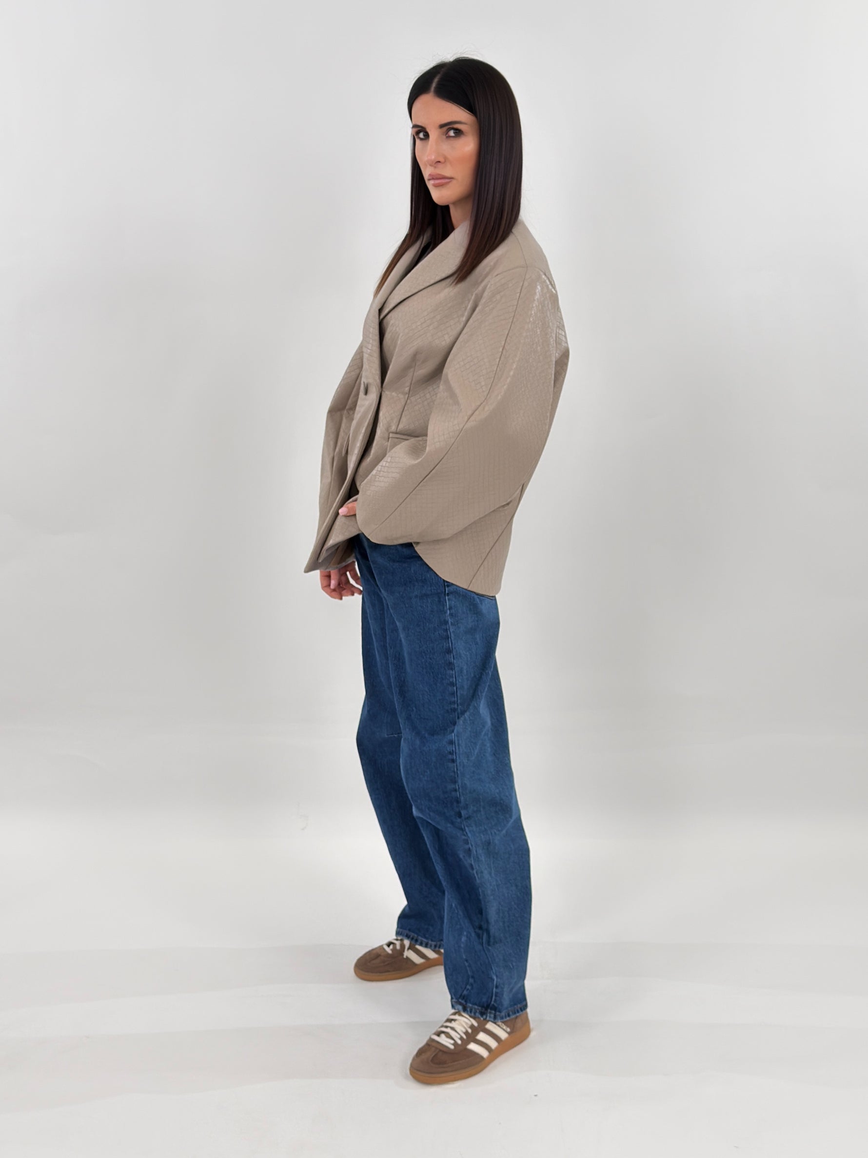 La modella nella foto è alta 1.75 cm ed indossa una M.