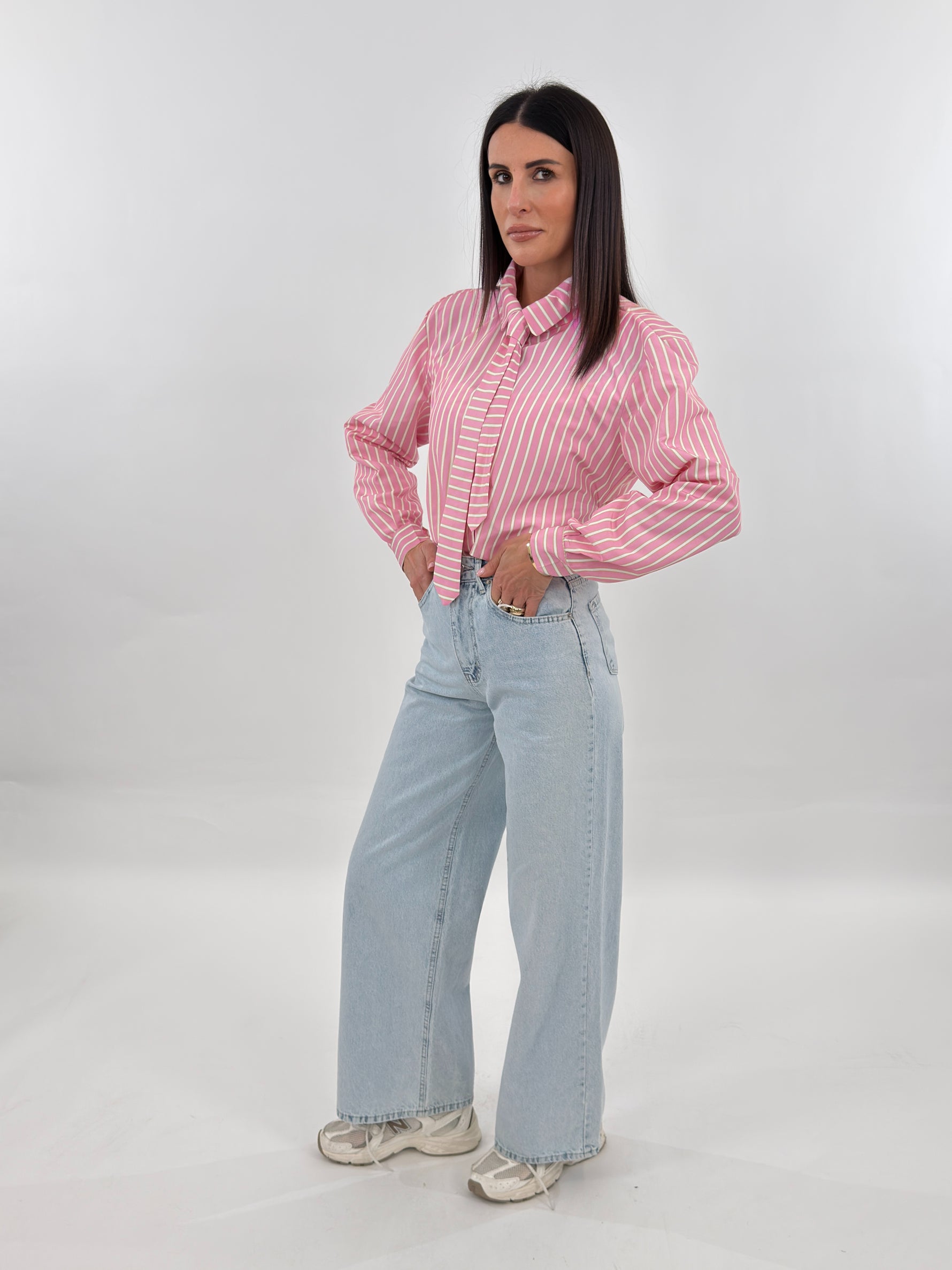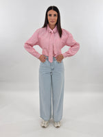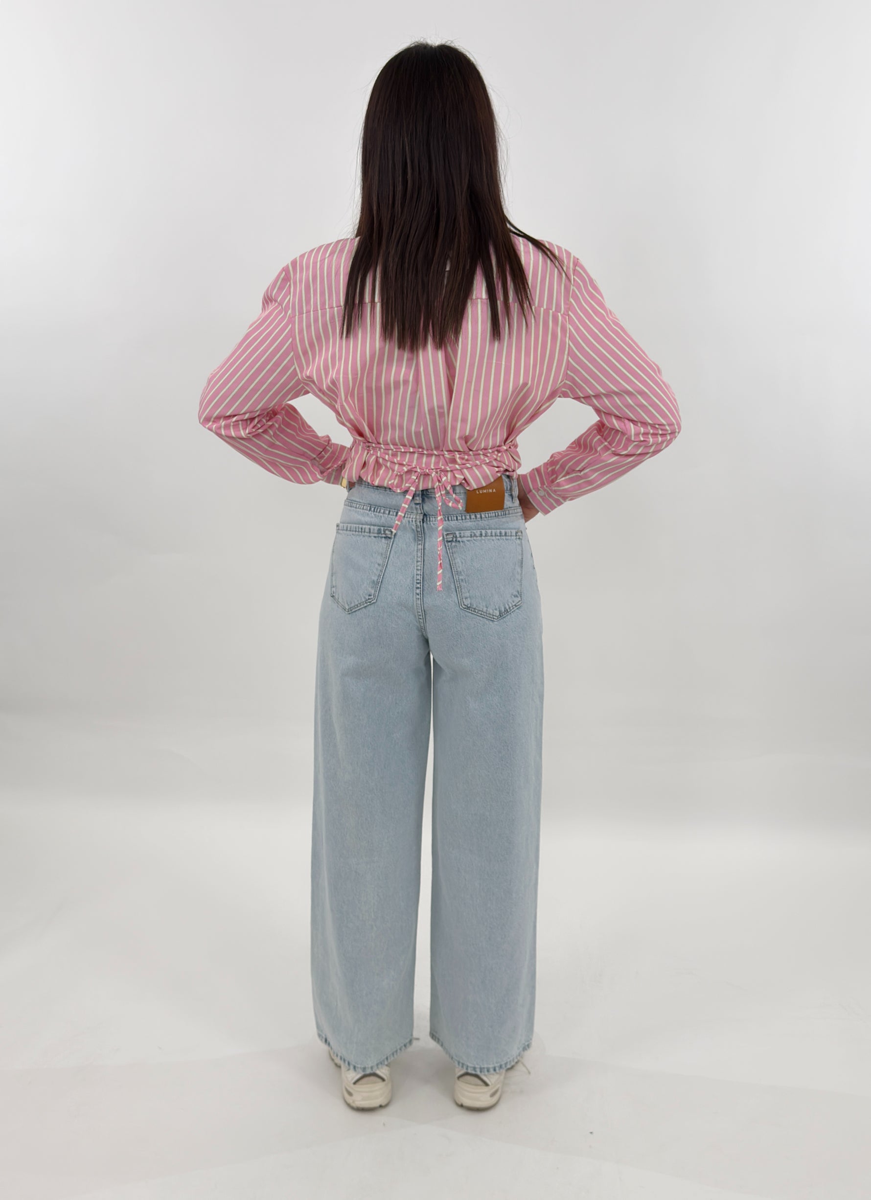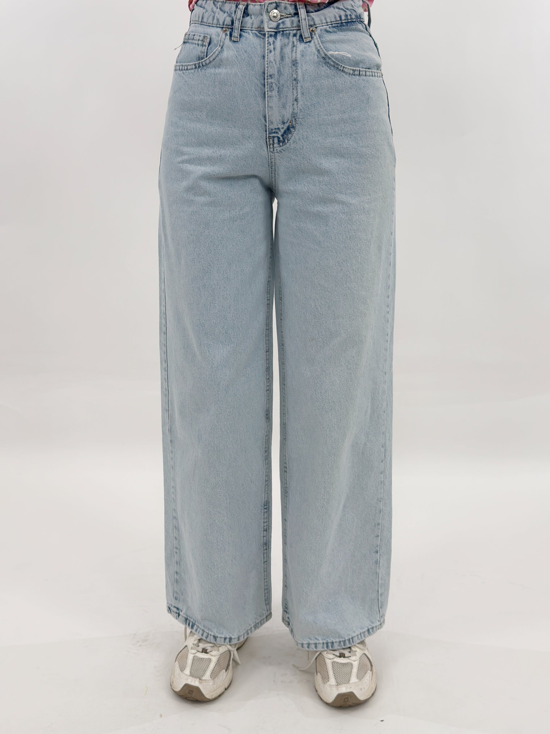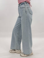 Jeans targato LUMINA in denim chiaro modello wide leg, cinque tasche. Chiusura con zip e bottone.