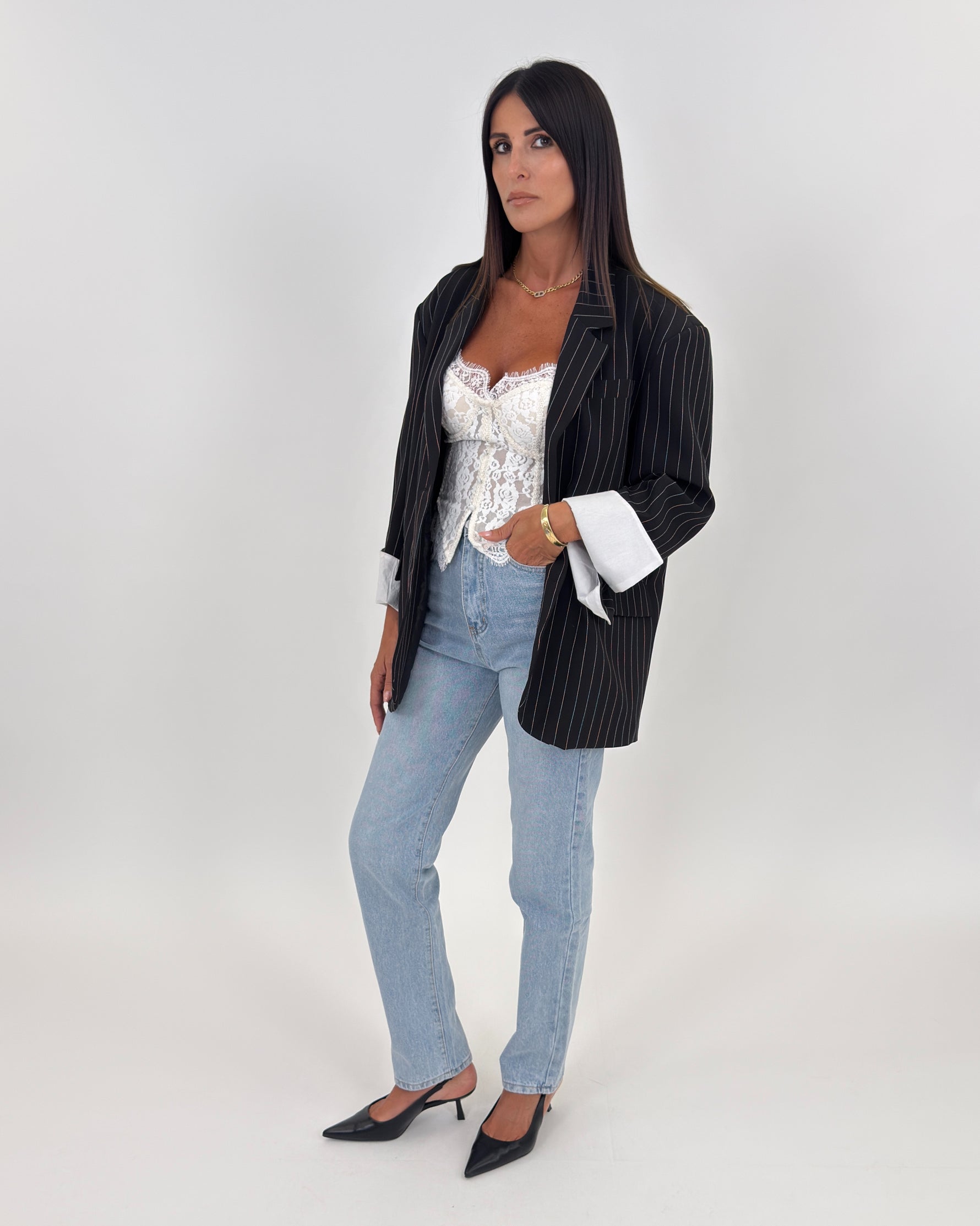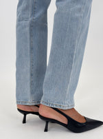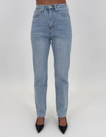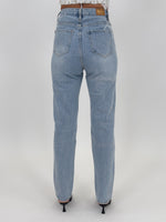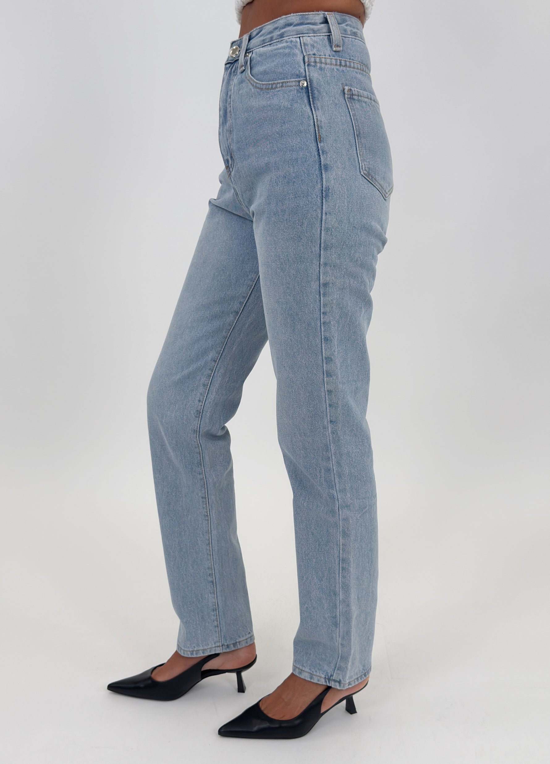 Jeans in denim chiaro modello straight cinque tasche. Chiusura con zip e bottone.