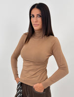 Dolcevita modello basic, collo alto e maniche lunghe con polsino finale a coste.