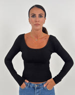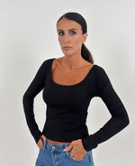 Maglia con scollo ampio a manica lunga.