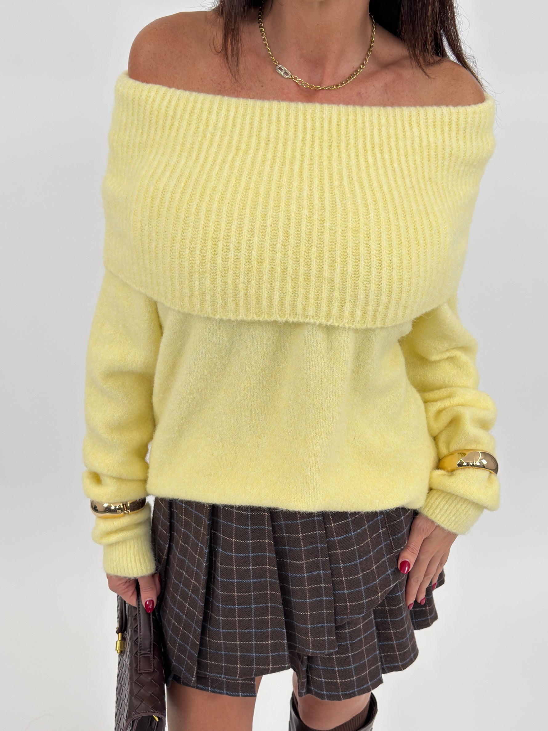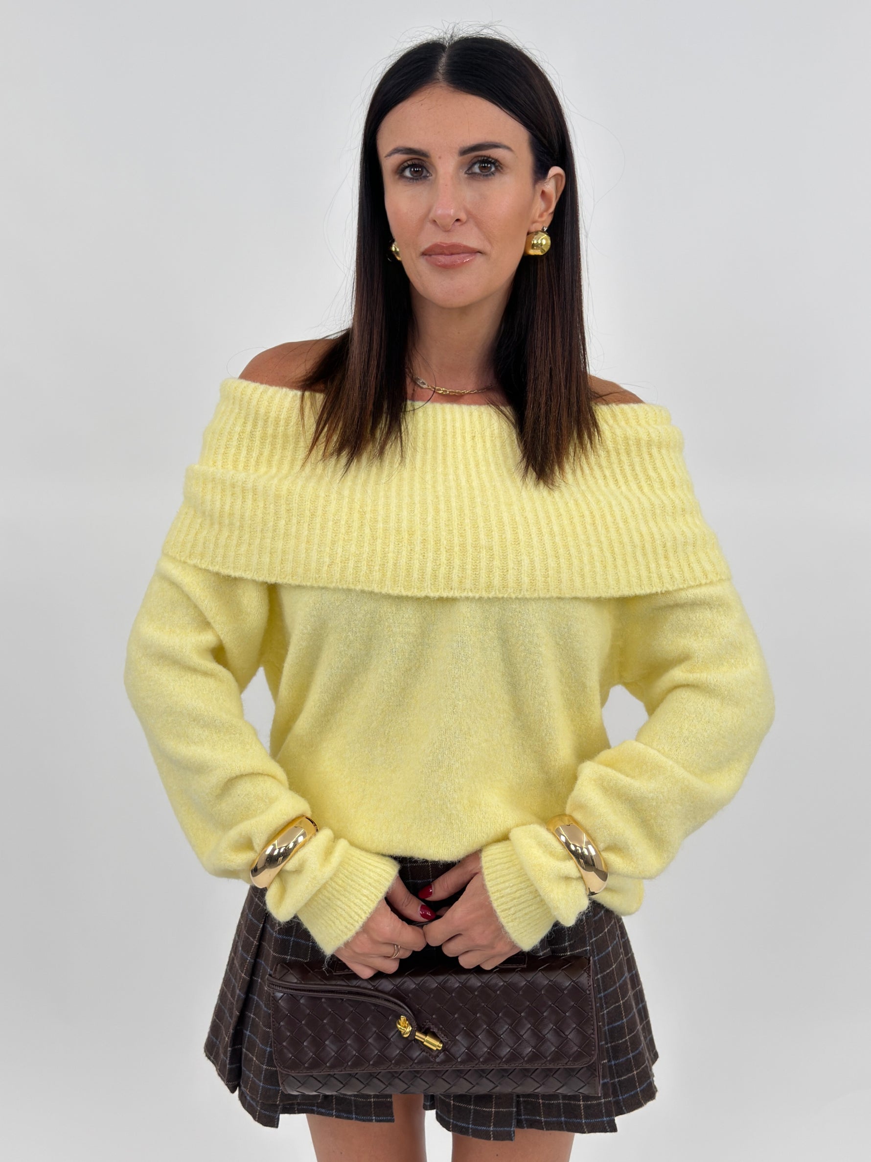 Maglia modello lungo con scollo a barca, manica lunga con polsino finale.