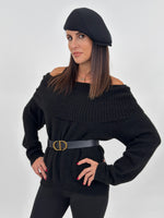 Maglia modello lungo con scollo a barca, manica lunga con polsino finale.