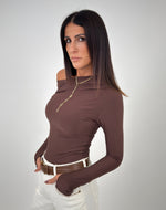 Maglia modello lungo, con scollo asimmetrico e manica lunga con foro per pollice, in lycra.