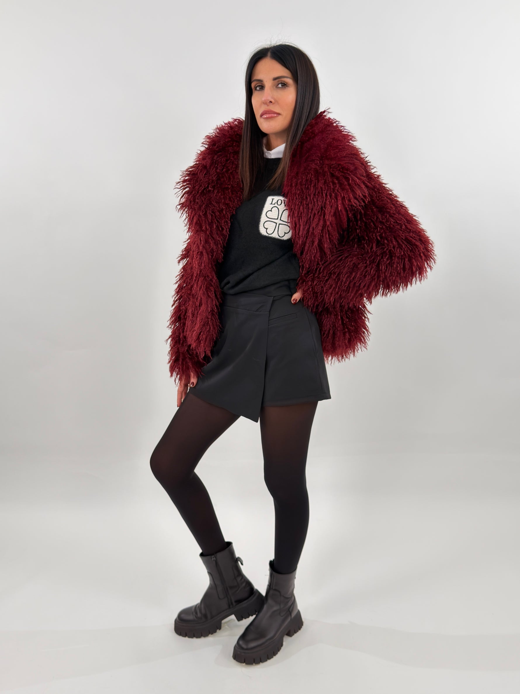 La modella nella foto è alta 1.75 cm ed indossa una Taglia M.