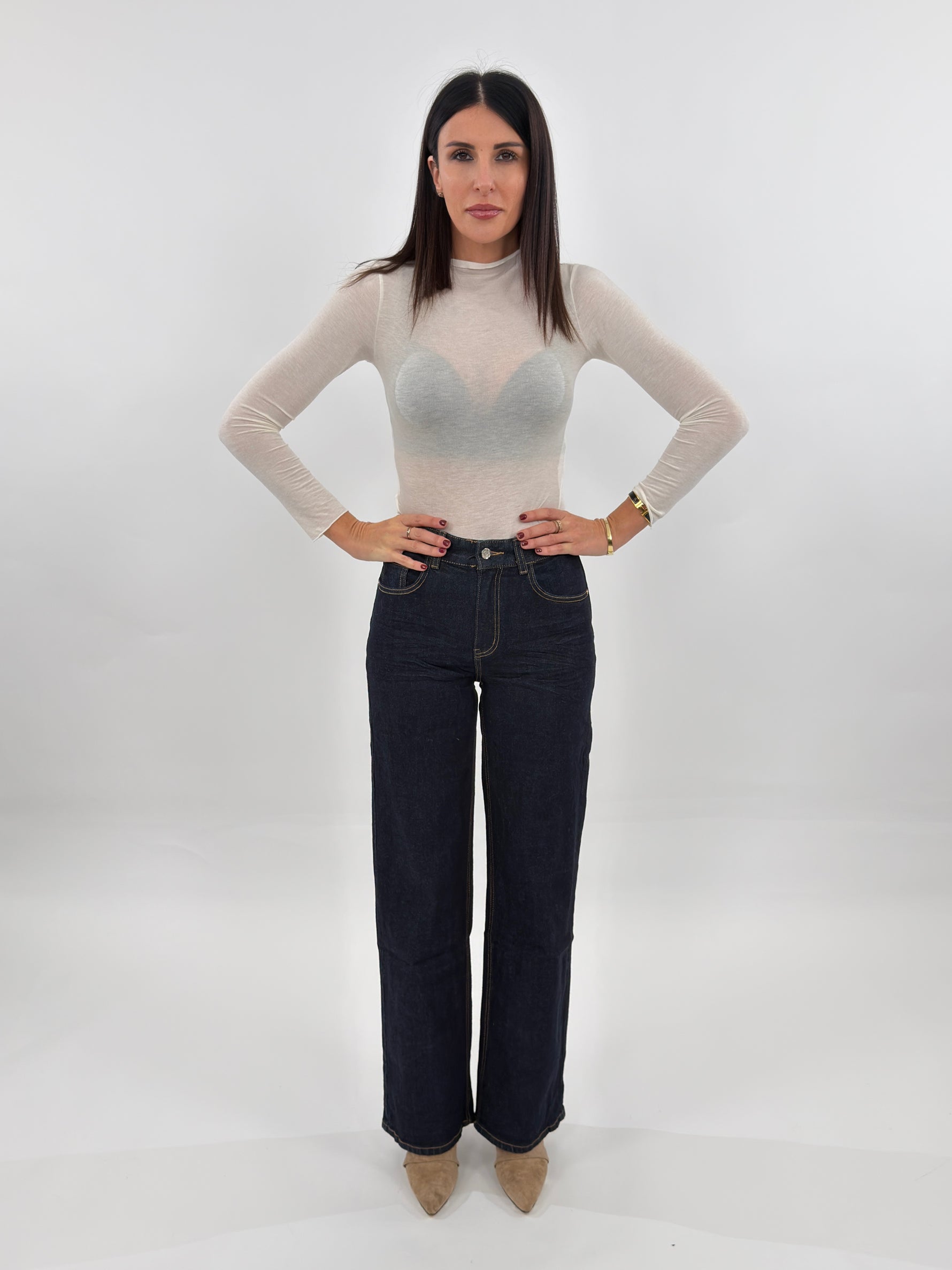 La modella nella foto è alta 1.75 cm ed indossa una M.