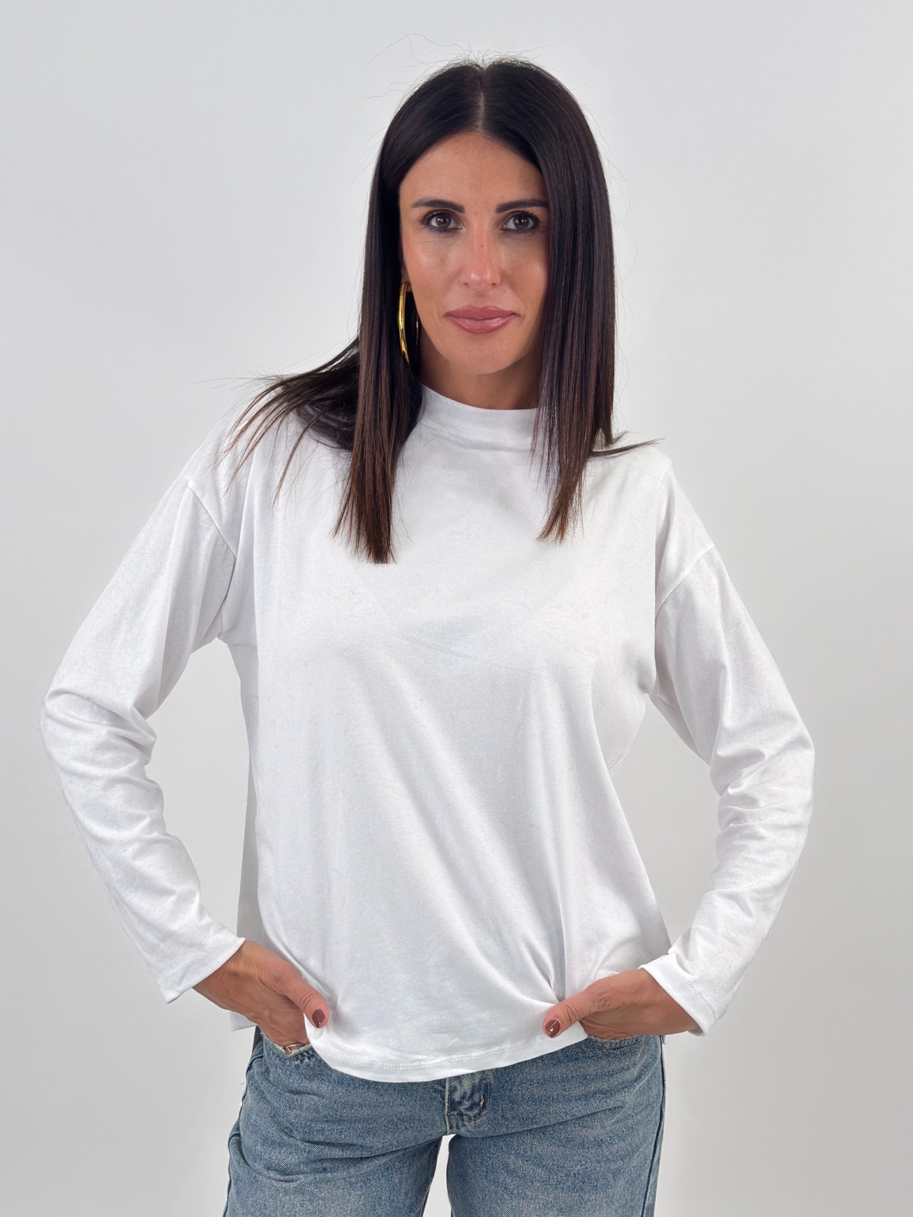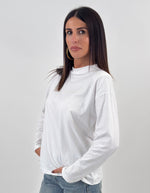 Maglia modello lungo girocollo. Maniche lunghe con spalline imbottite.