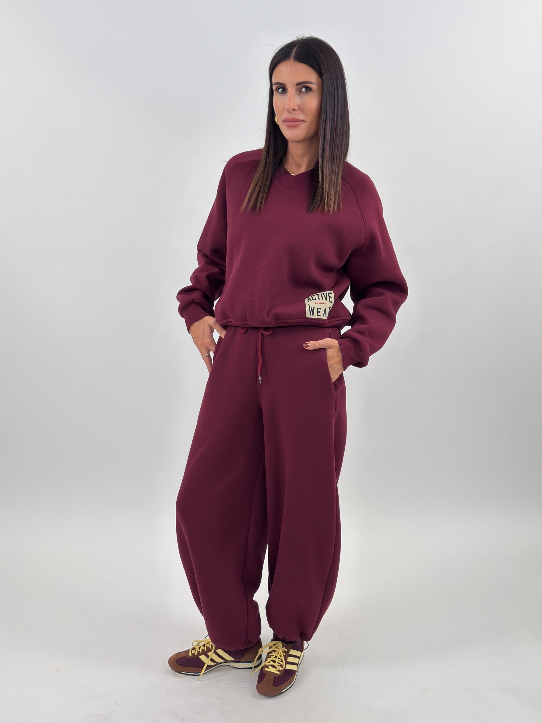 Tra i Nuovi arrivi di questa settimana vi presentiamo la nostra fantastica Tuta Active targata Lumina, modello felpato, composta da felpa con scollo a V a coste, maniche lunghe con spalle cadenti e polsino finale a coste. Dettaglio etichetta frontale con logo. Pantalone modello jogger regolabile sul fondo con tasche laterali. Bustino elastico in vita con laccetti regolabili.