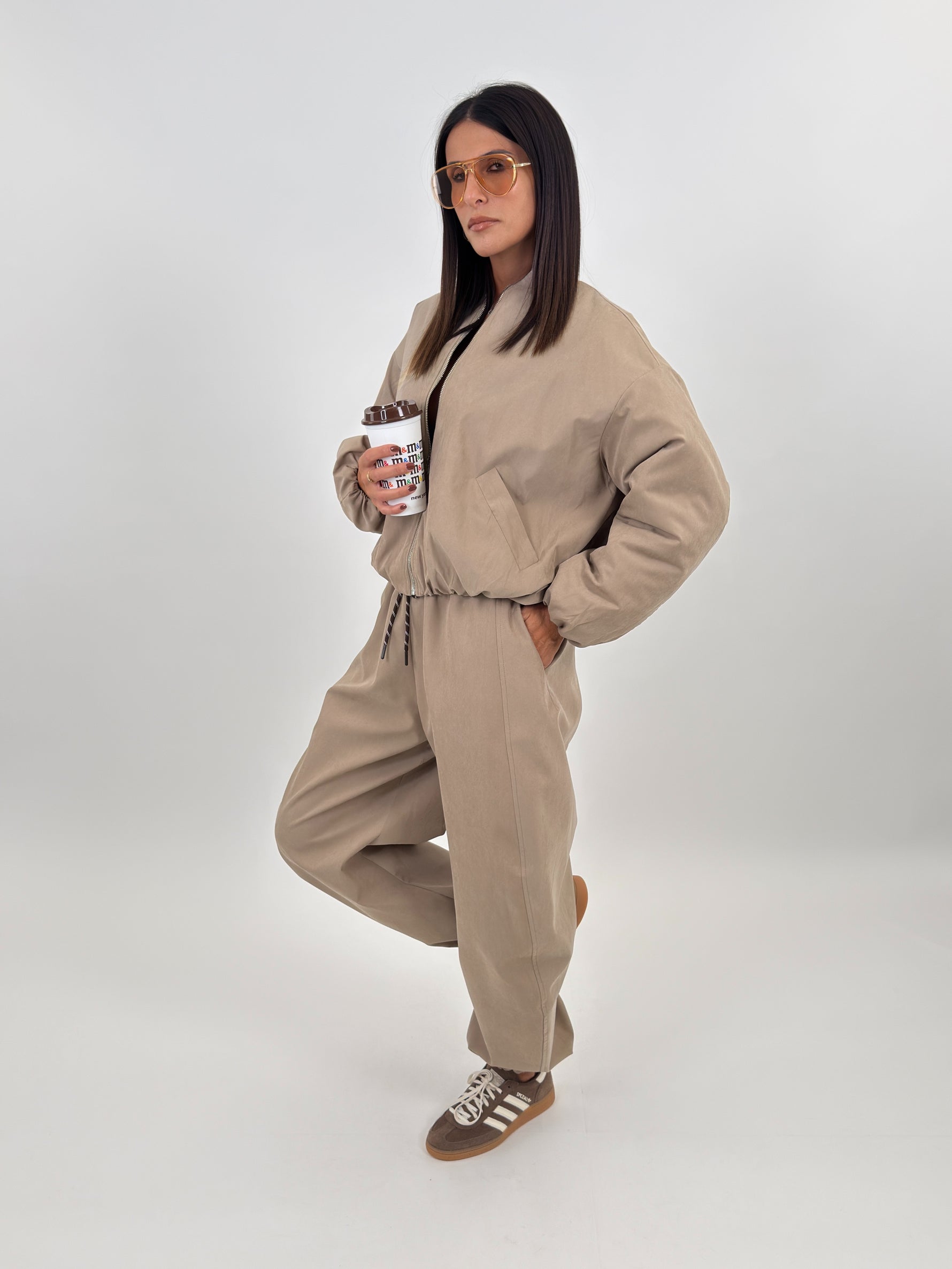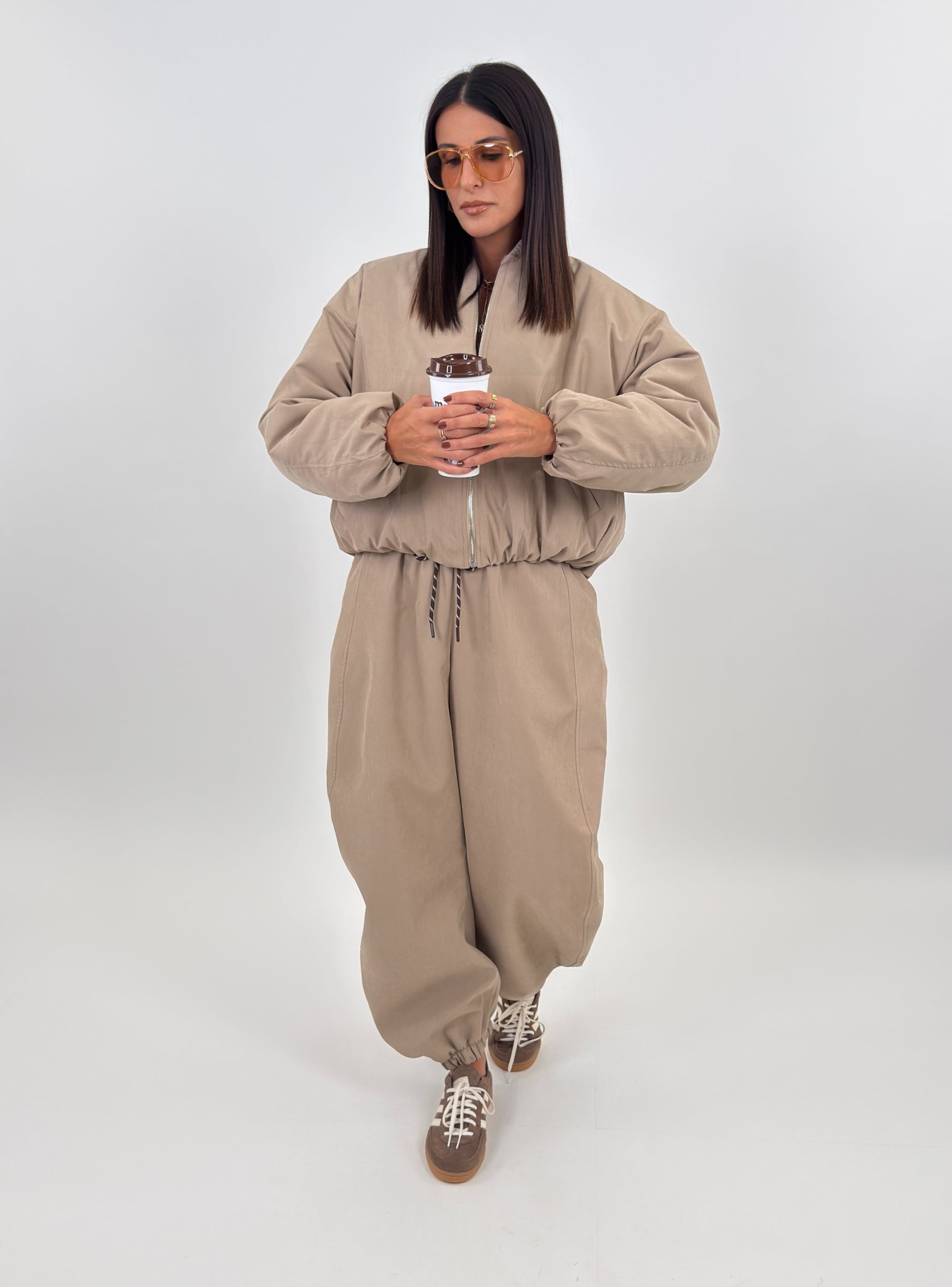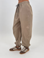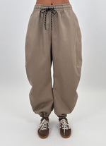 Pantalone targato Lumina, modello barrel leg. Presenta elastico in vita con laccetti regolabili e tasche laterali. Fondo elastico.