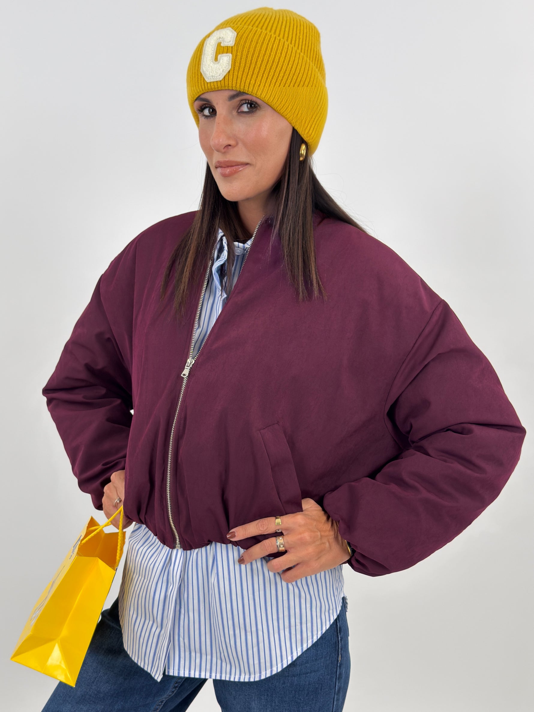 Giubbotto modello Bomber targato Lumina, con colletto basso a coste e maniche lunghe con polsino elastico. Presenta due tasche anteriori e chiusura frontale con zip. Fondo elastico.