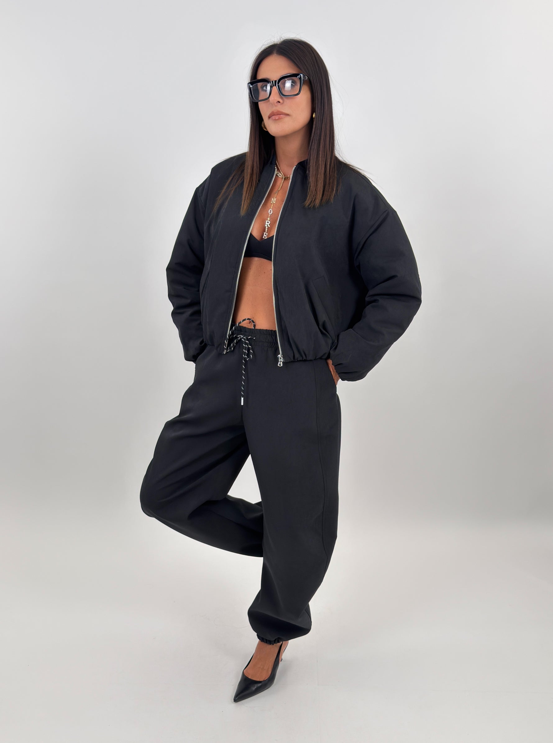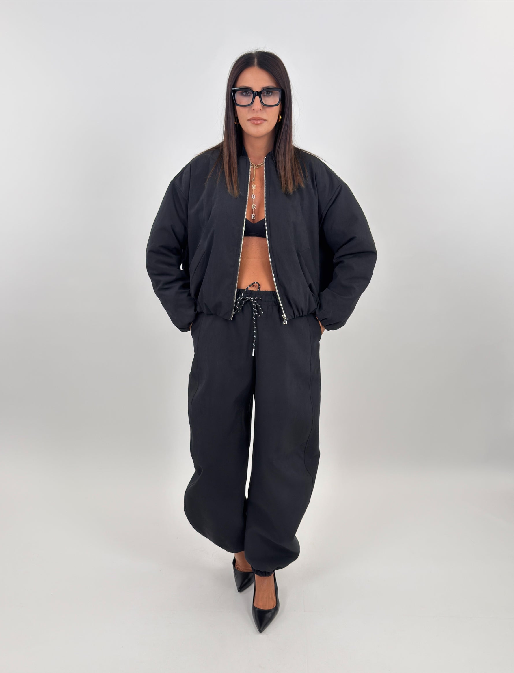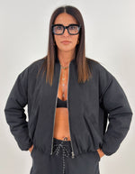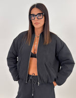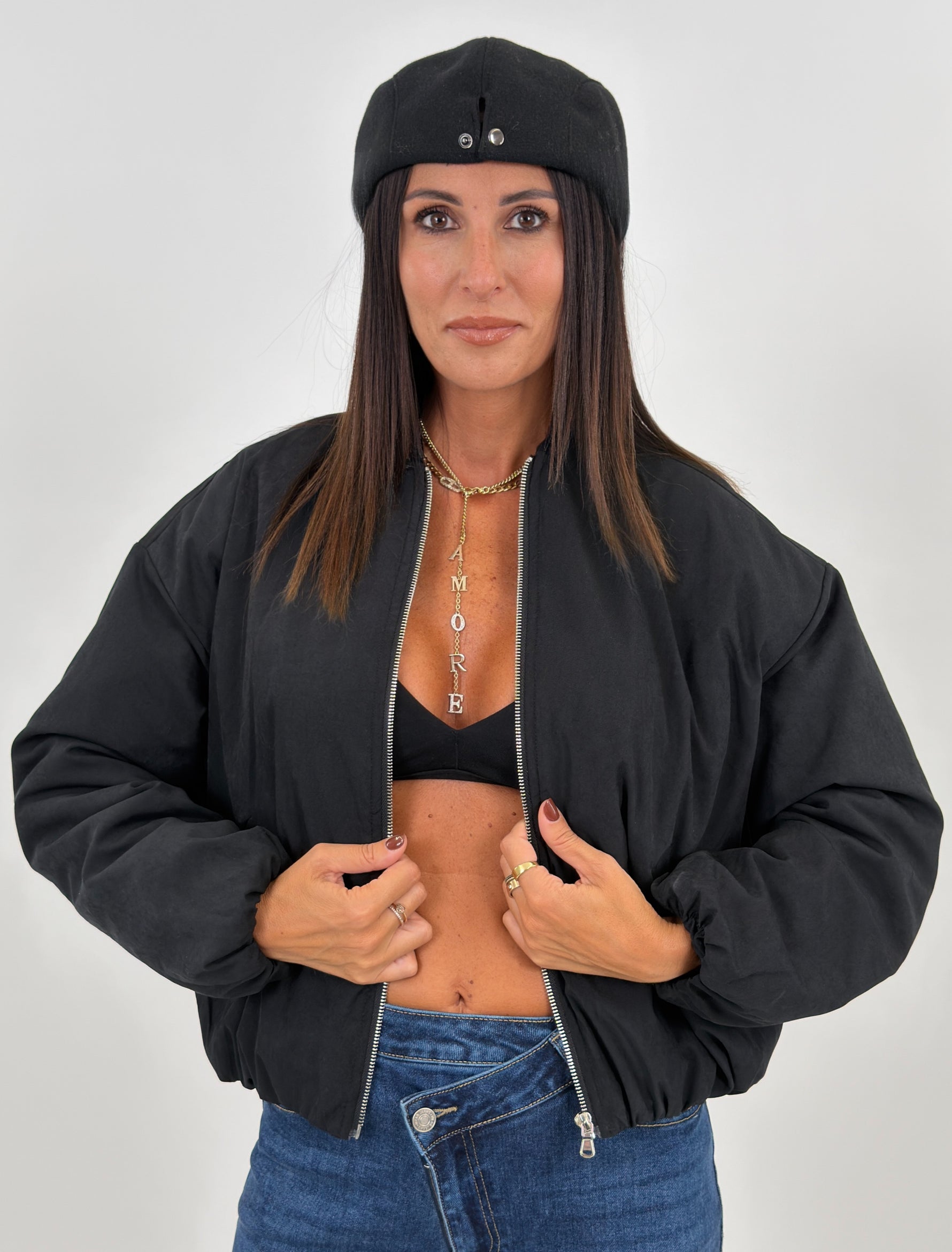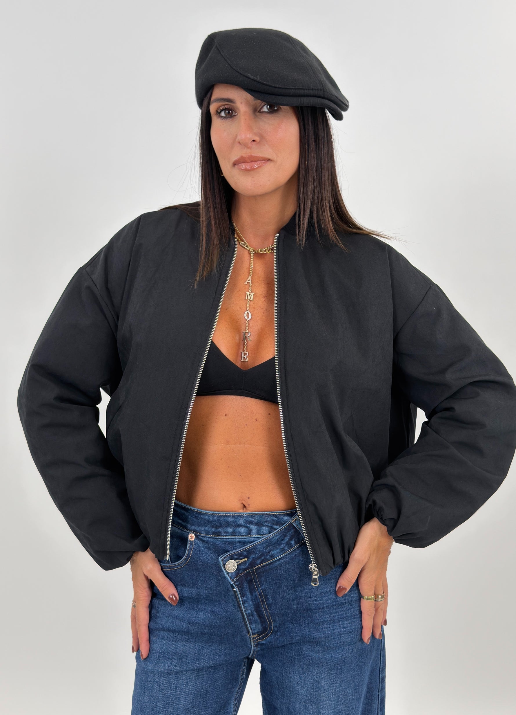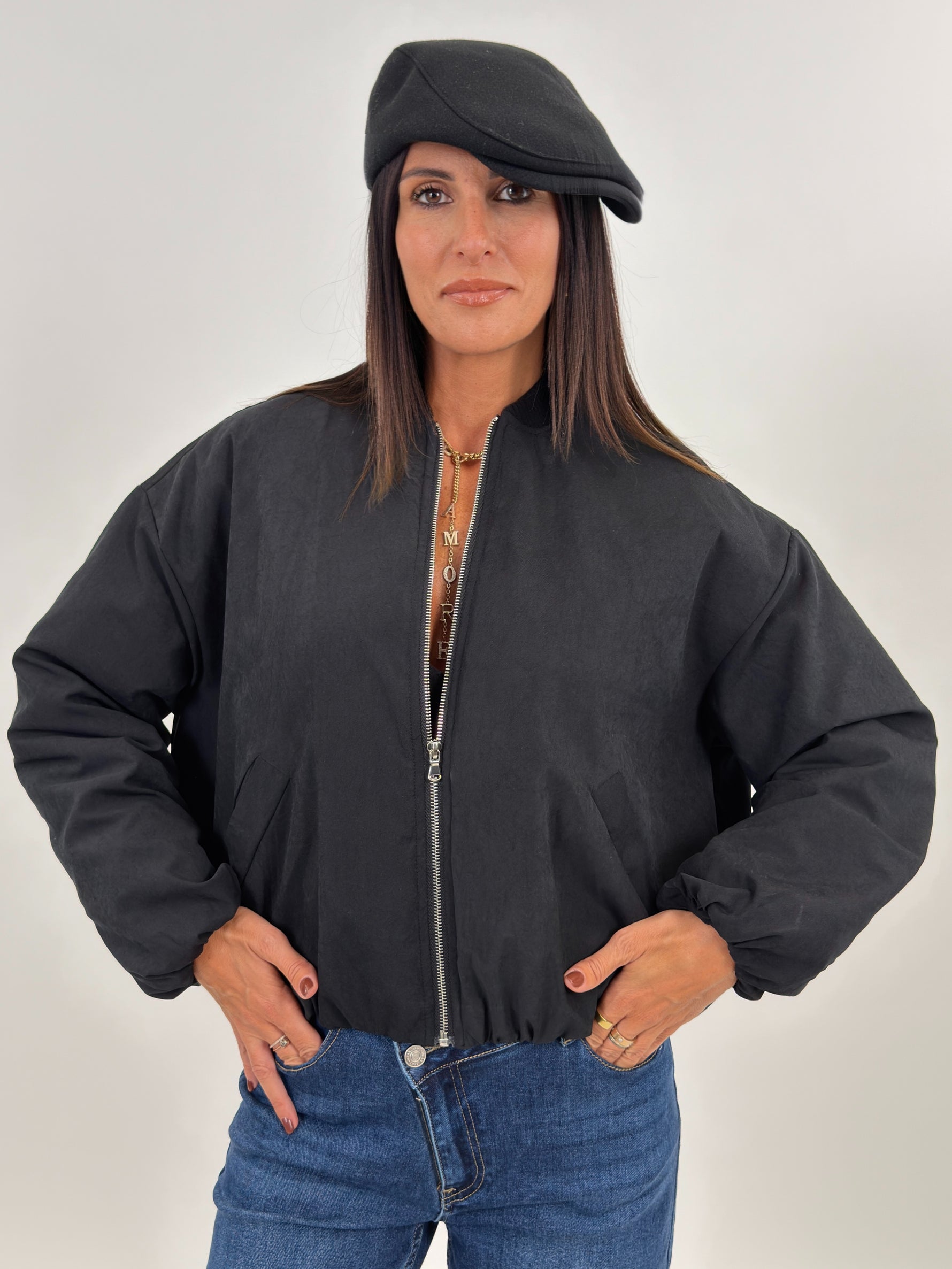Giubbotto modello Bomber targato Lumina, con colletto basso a coste e maniche lunghe con polsino elastico. Presenta due tasche anteriori e chiusura frontale con zip. Fondo elastico.