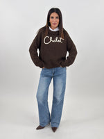 Maglia targato LUMINA, modello lungo girocollo, maniche lunghe con spalle cadenti e polsino finale. Dettaglio stampa frontale con scritta.