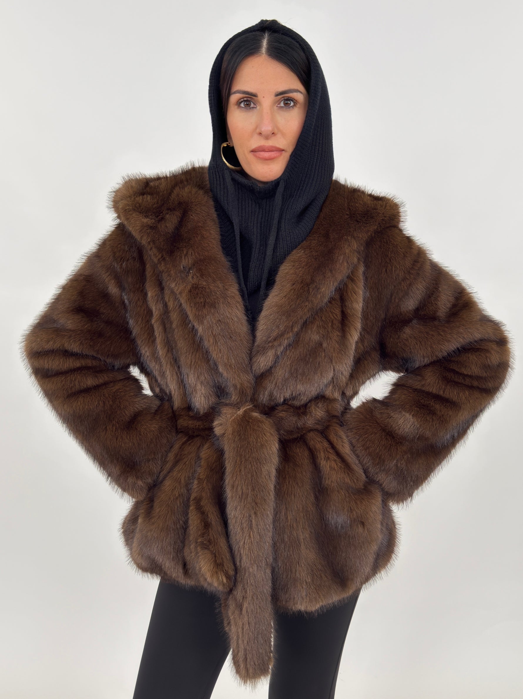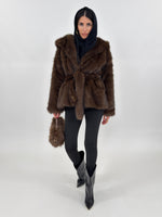 Tra i Nuovi Arrivi in casa Amishops Vi presnetiamo la nostra EcoPelliccia sintetica Courchevel modello lunghezza media con cappuccio e fodera interna. Maniche lunghe e tasche laterali. Chiusura frontale con bottone a pressione e cintura in vita.
