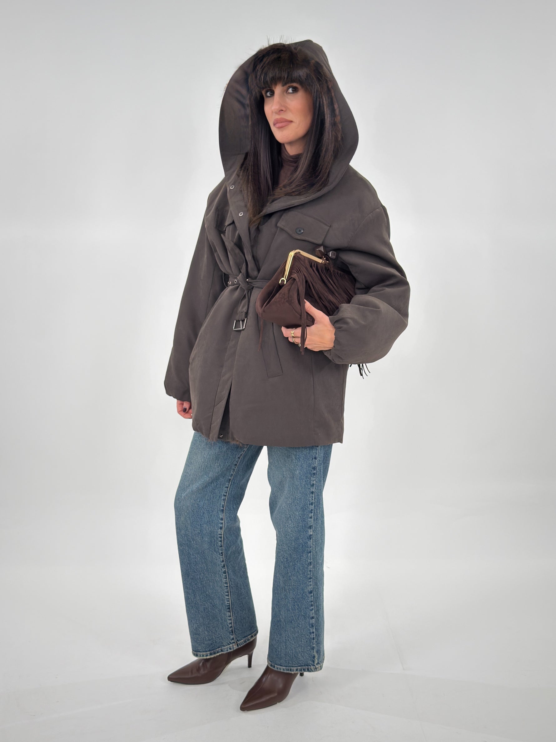 Tra i Nuovi arrivi di questa settimana Vi presentiamo questo fantastico Giubbotto targato Lumina. Presenta pelliccia sintetica all'interno del cappuccio e sul d'avanti, maniche lunghe con polsino elastico, tasche laterali. Fodera interna trapuntata.