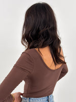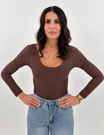 Body in lycra con scollo ampio a maniche lunghe.